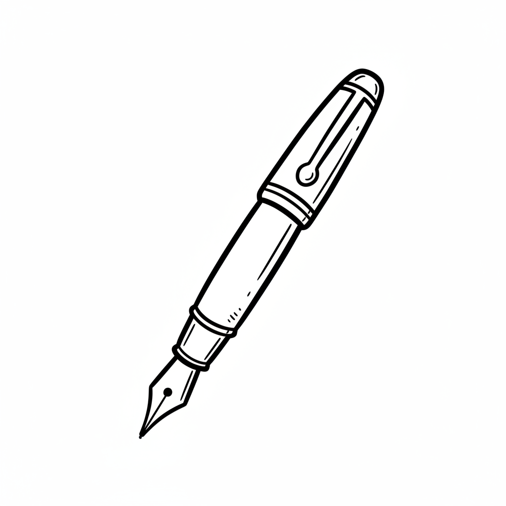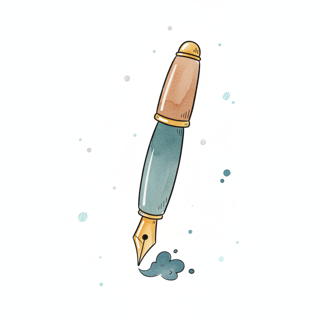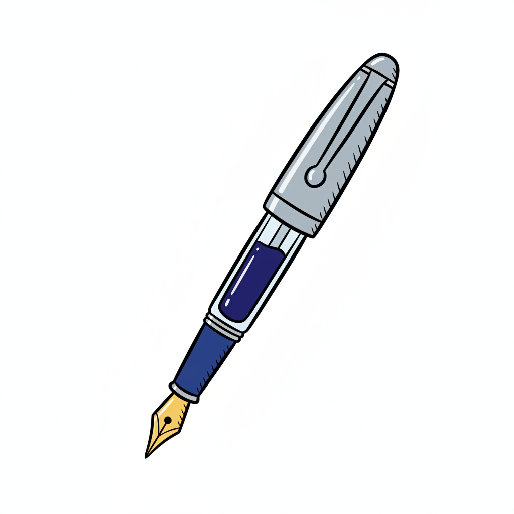 Ein stilisierter Füllfederhalter mit blauer Tinte.