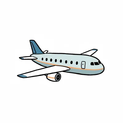 Ein gezeichnetes Flugzeug in hellblauen und weißen Farben.