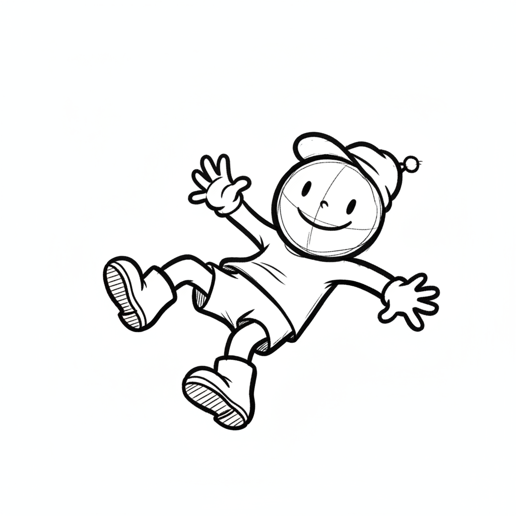 Ein fröhlicher Cartoon-Junge mit Mütze, der Spaß hat.