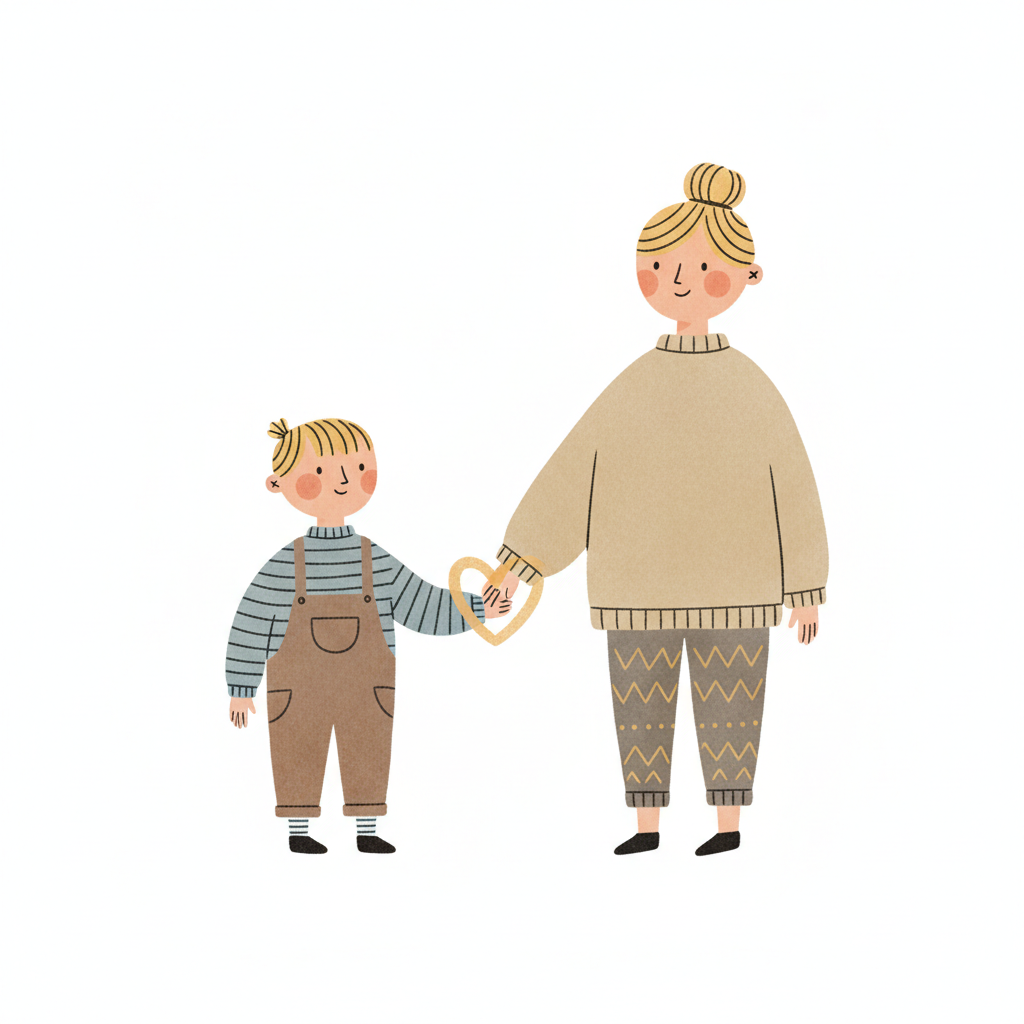 familie zuneigung illustration nordic-bilderbuch-stil händchen halten
