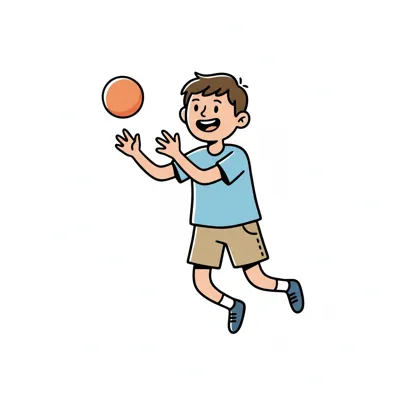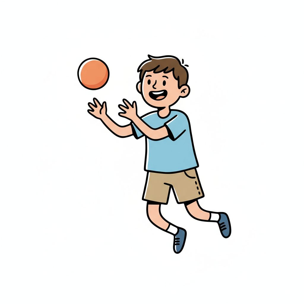 Ein Junge fängt einen Ball und hat dabei Spaß.