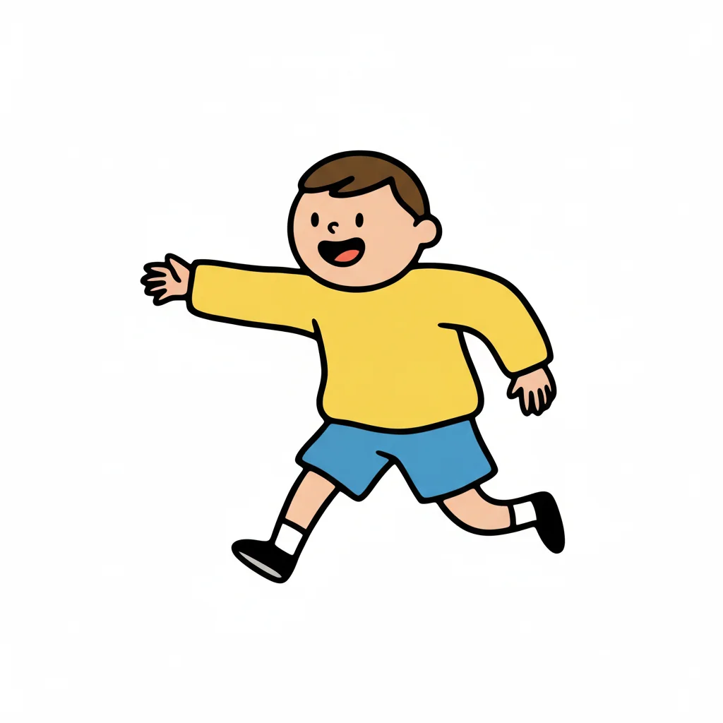 Minimalistische Vektorillustration im flächigen Icon-Stil. Sehr einfache, reduzierte Formen mit klaren, dicken Konturen und wenigen Details. Flächige Farben ohne Verläufe oder Texturen, ruhige Farbpalette, klare Silhouette und gut lesbare, freundliche Figur. Moderne, kindgerechte Lernillustration im Stil einfacher Piktogramme, sauberer Hintergrund und übersichtliche Komposition. Hoher Kontrast, isoliert auf weißem Hintergrund. WICHTIG: KEIN TEXT im Bild. Hintergrund: Rein weiß.