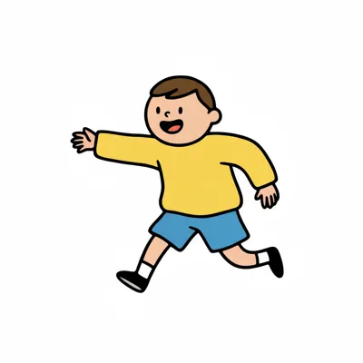 Ein fröhlicher Junge läuft mit einem Lächeln.