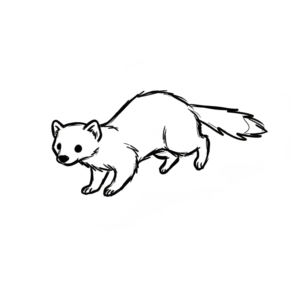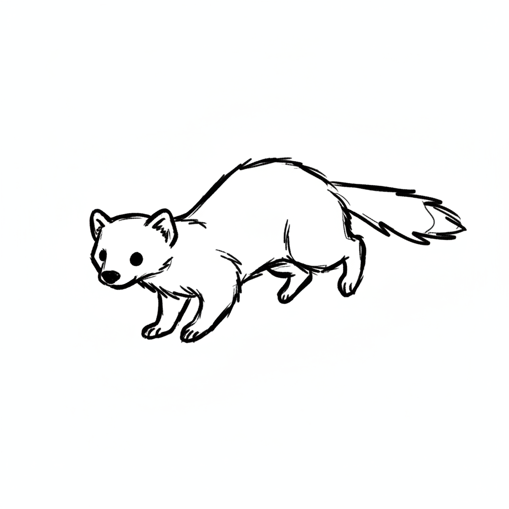 Eine zeichnerische Darstellung eines tierischen Wesens mit buschigem Schwanz.