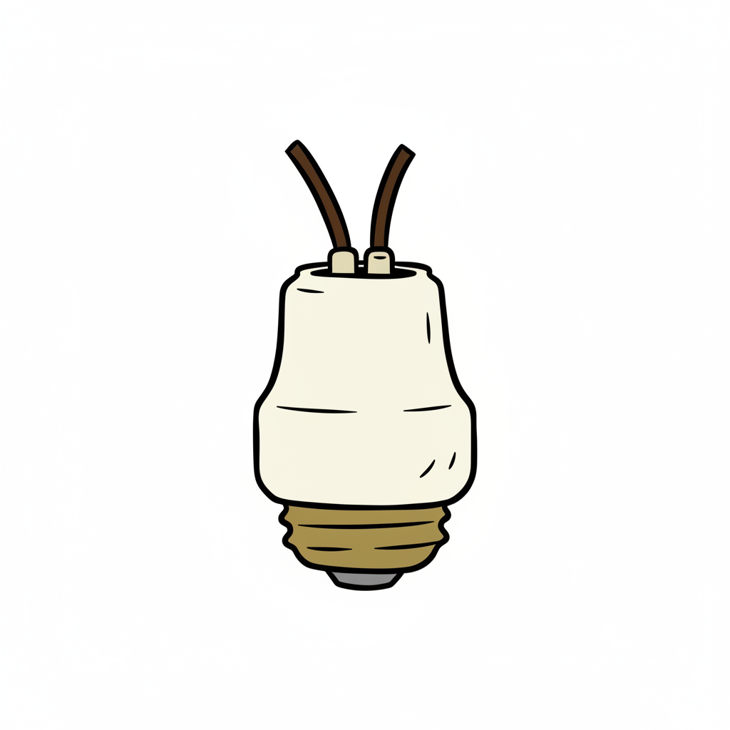 Illustration einer weißen Lampenfassung mit zwei Kabeln und Gewindesockel im Cartoon-Stil.