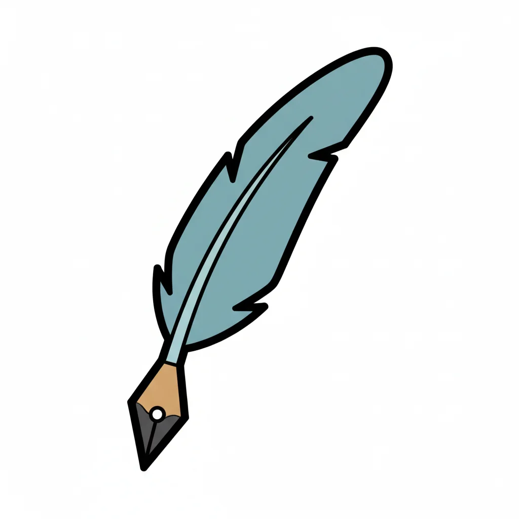 Eine stilisierte blaue Schreibfeder mit brauner Spitze auf weißem Hintergrund.