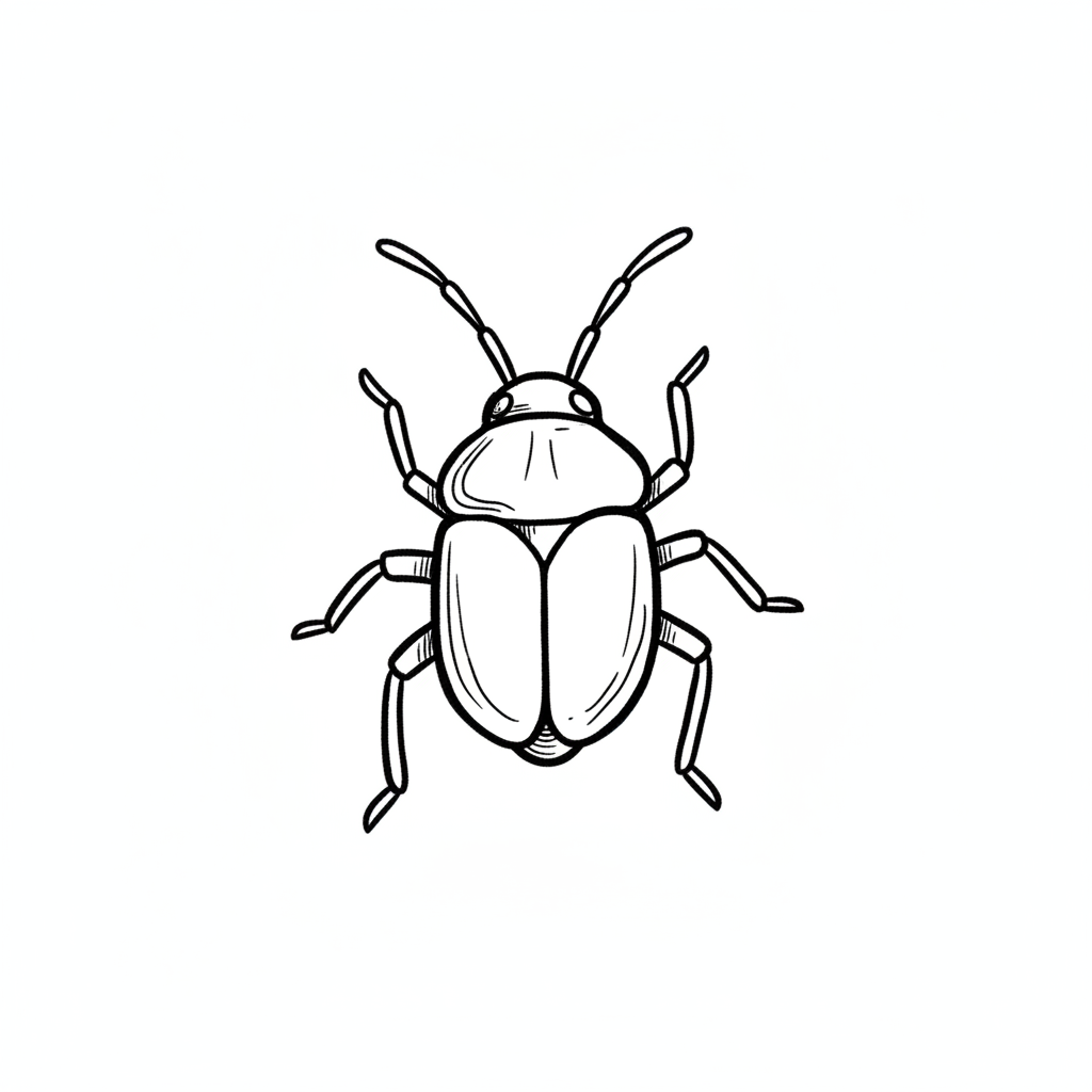 Schwarz-weiß Skizze eines Käfers von oben, handgezeichneter Stil.