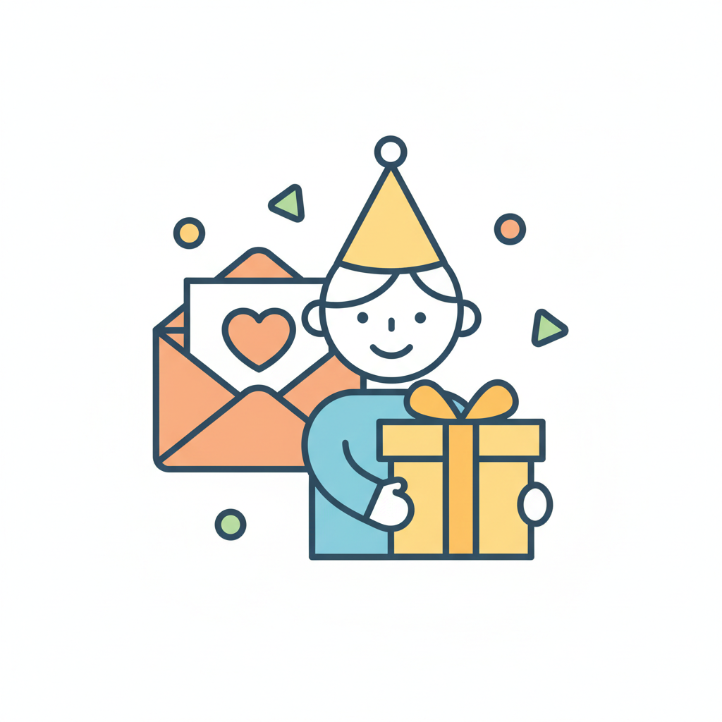 Ein fröhliches Kind mit Geschenk und Briefumschlag voller Liebe.