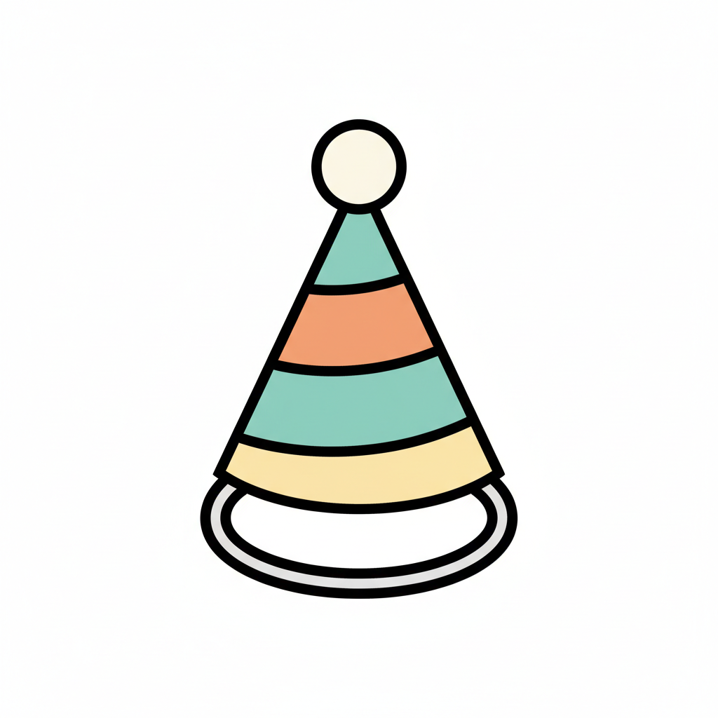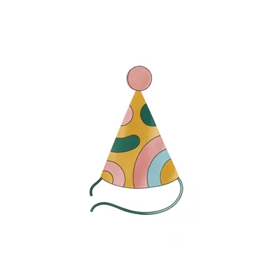 Bunter Partyhut mit Muster und einer kleinen Kugel oben.
