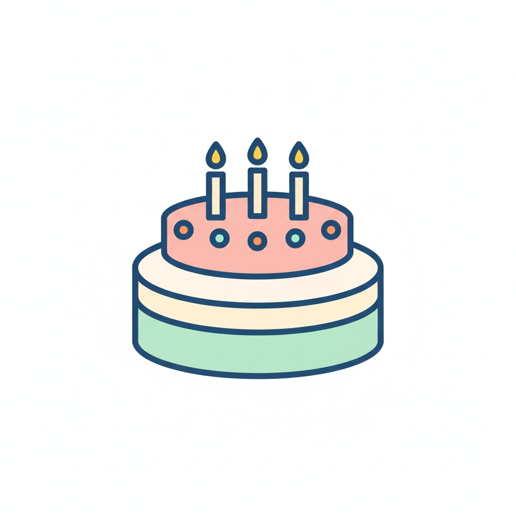 Eine bunte Geburtstagstorte mit drei Kerzen.