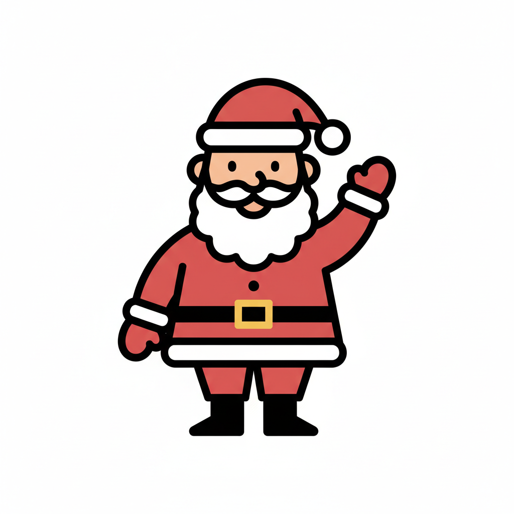 Fröhlicher Weihnachtsmann winkt mit rotem Anzug und Bart.