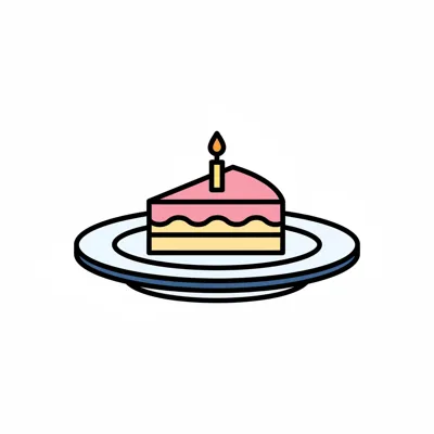 Ein Stück Kuchen auf einem Teller mit einer Kerze oben drauf.