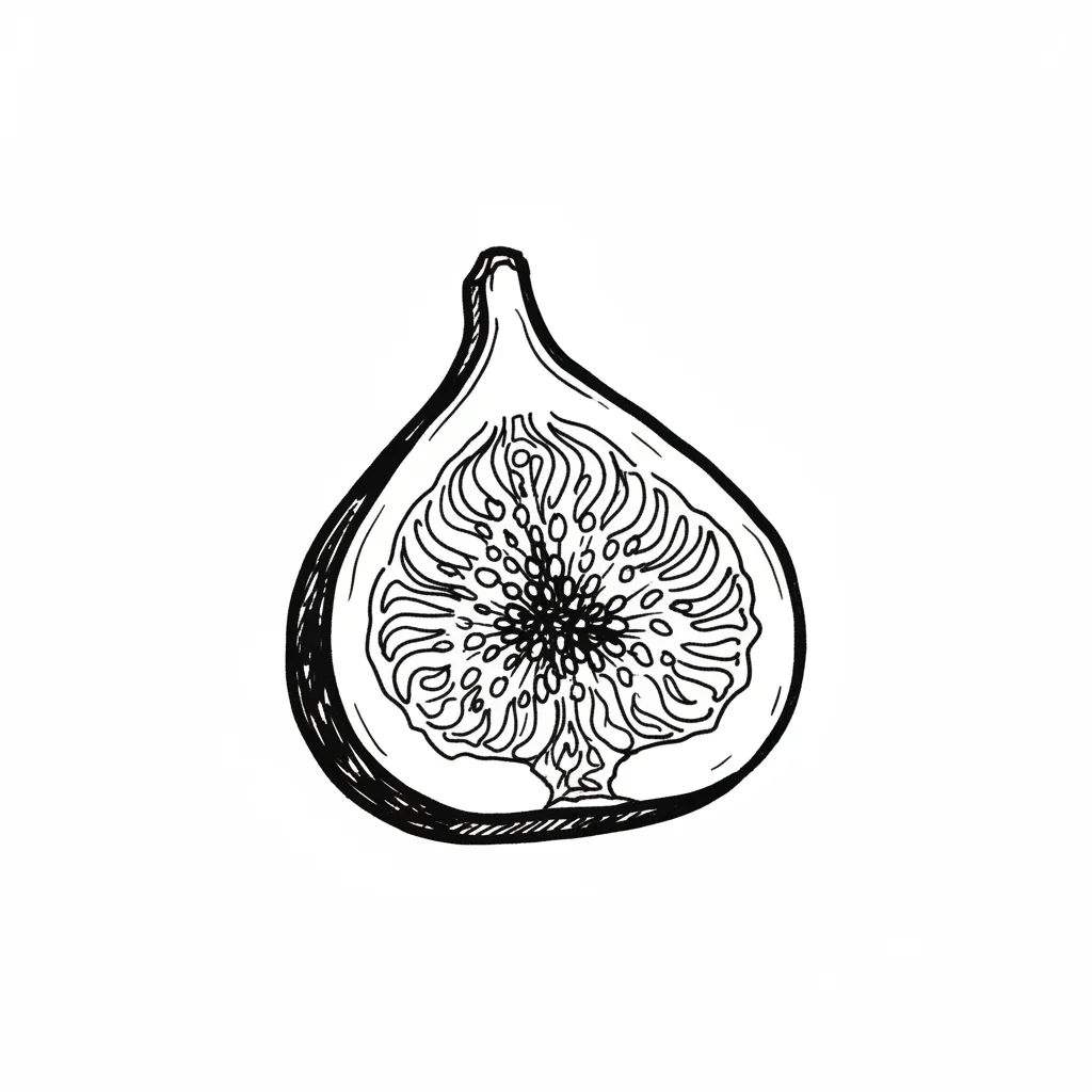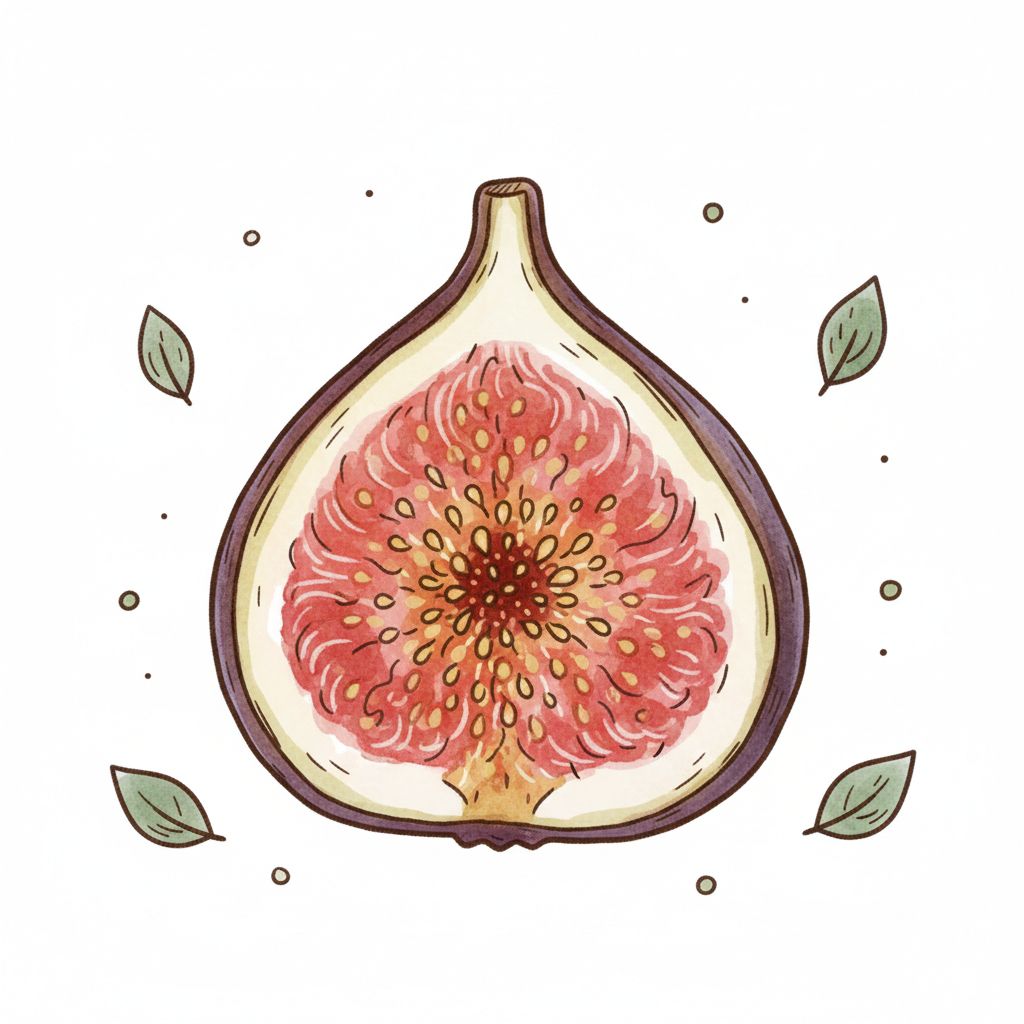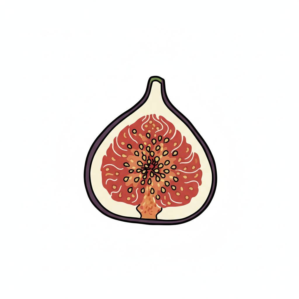 Eine halbe Feige mit detaillierter Darstellung der inneren Struktur.