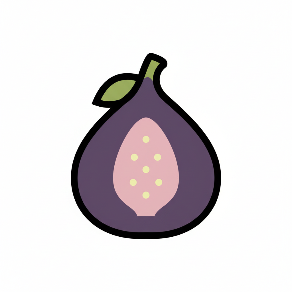Eine stilisierte Feige mit runder Form und bunten Innenteilen.