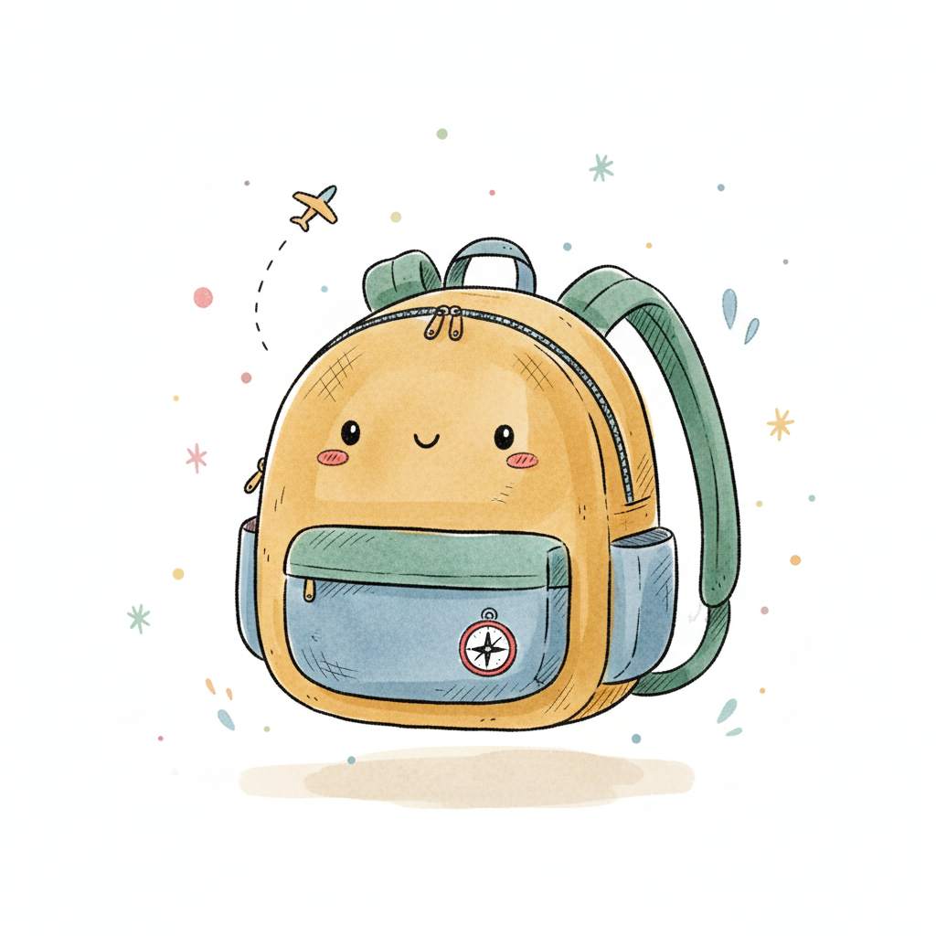 Ein niedlicher Rucksack mit lächelndem Gesicht und bunten Akzenten.