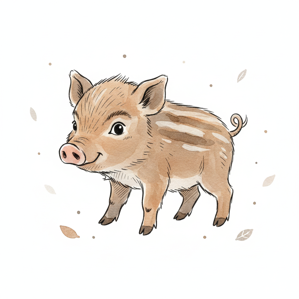 Ein niedliches, gezeichnetes Ferkel mit Streifen und freundlichem Gesicht.