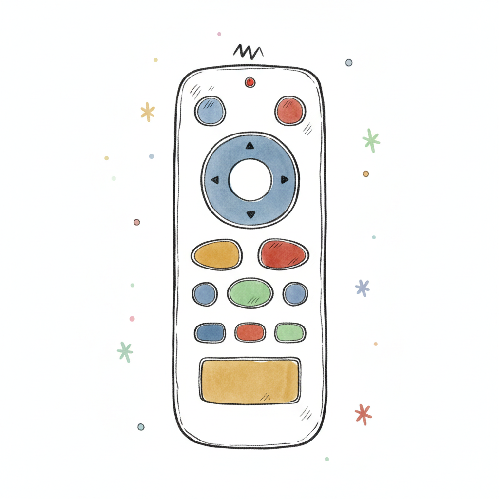 Eine einfache Zeichnung einer Fernbedienung mit Tasten.