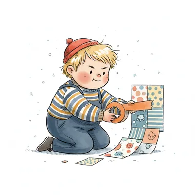 Niedliche, kindgerecht illustrierte Szene mit einem Kind oder einer Person als Hauptfigur, vor rein weißem Hintergrund, im frech-nordischen Aquarell-Skizzenstil. Klare, leicht wackelige Tuschekonturen, sichtbare Pinsel- und Strichtextur, dezente Schraffuren, weiche handgemalte Farbflächen in gedeckten Farben. Einfache, runde Formen. Keine harten Schatten, sondern sanfte, transparente Aquarellschichten. Leicht raue, handgezeichnete Linien statt glatter Vektorkanten. Subtile, vereinzelte Kritzelpunkte oder kleine Details im Hintergrund (wie Pünktchen oder feine Striche), aber keine echte Umgebung oder Landschaft. Die Figur ist mittig zentriert. Insgesamt charmant, humorvoll, warm und handgemacht wirkend. WICHTIG: Das Bild darf ABSOLUT KEINEN TEXT, KEINE BUCHSTABEN und KEINE ZAHLEN enthalten.