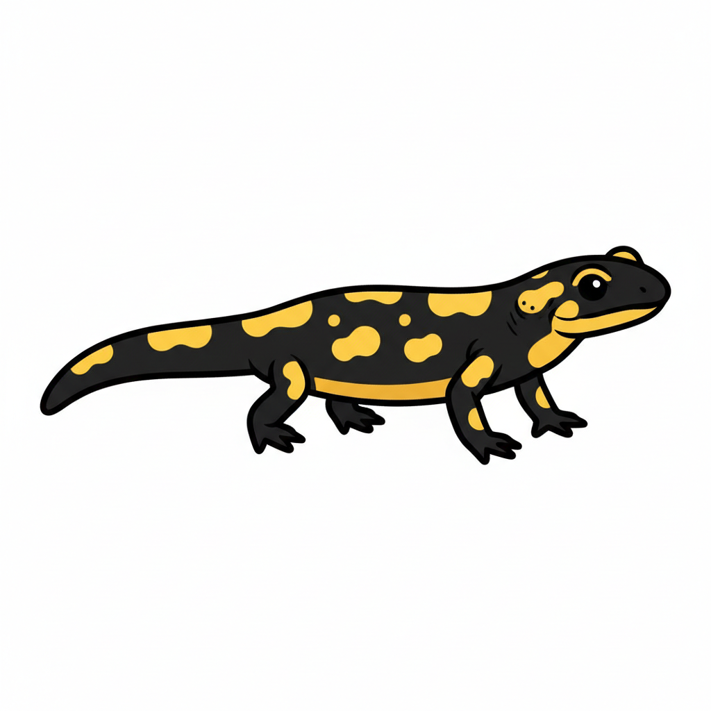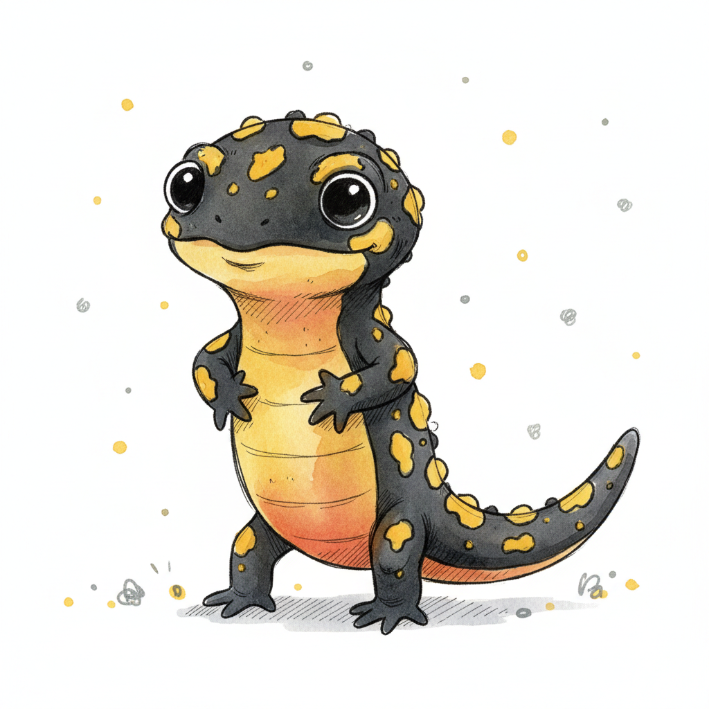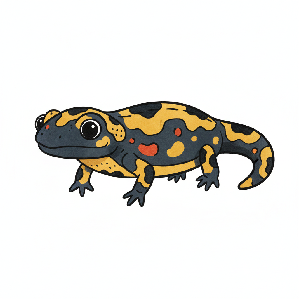 Ein gezeichneter Salamander mit auffälligem Muster.