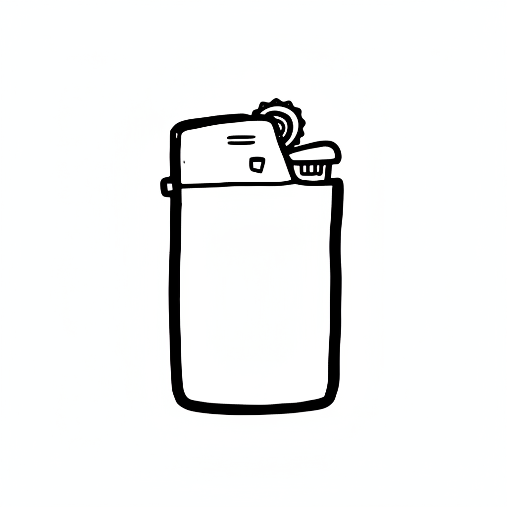 Einfache, schwarz-weiße Strichzeichnung eines Feuerzeugs im Cartoon-Stil auf weißem Hintergrund.