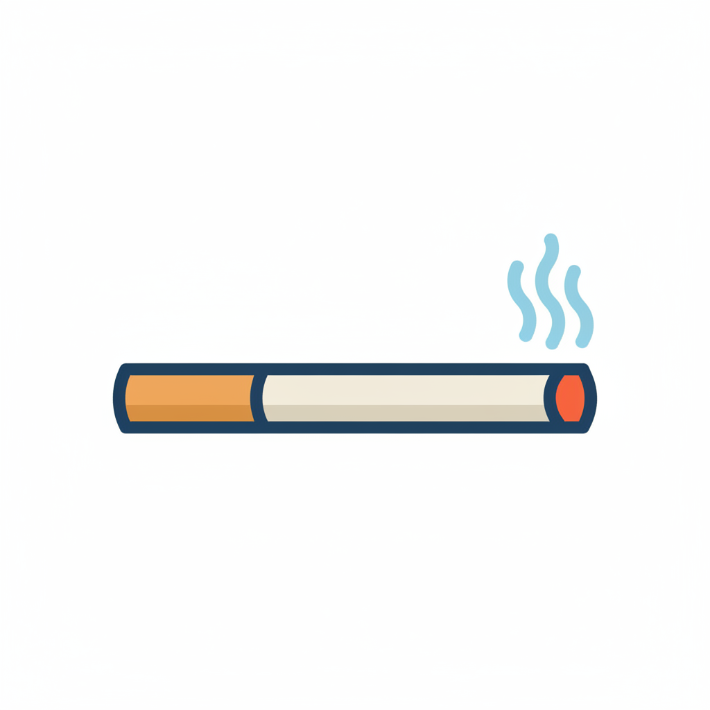 Stilisierte Illustration einer brennenden Zigarette mit Filter und aufsteigendem Rauch.