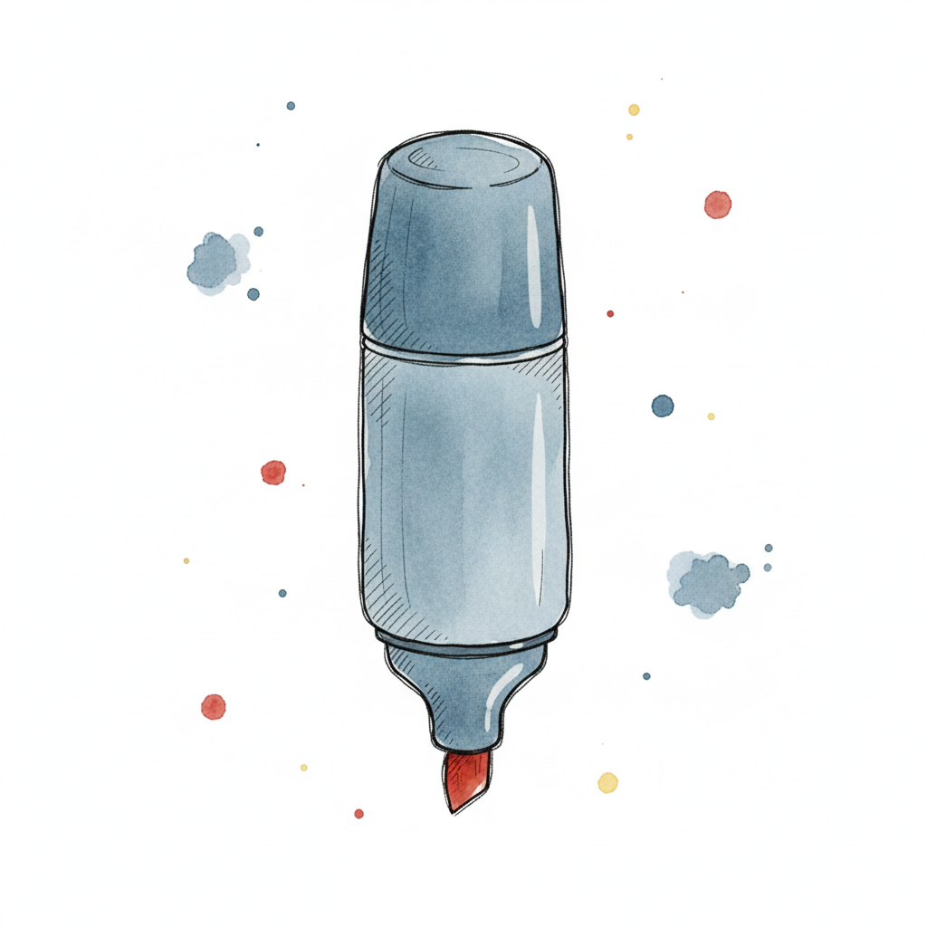 Blauer Marker mit grauem Deckel, simplifiziert dargestellt.