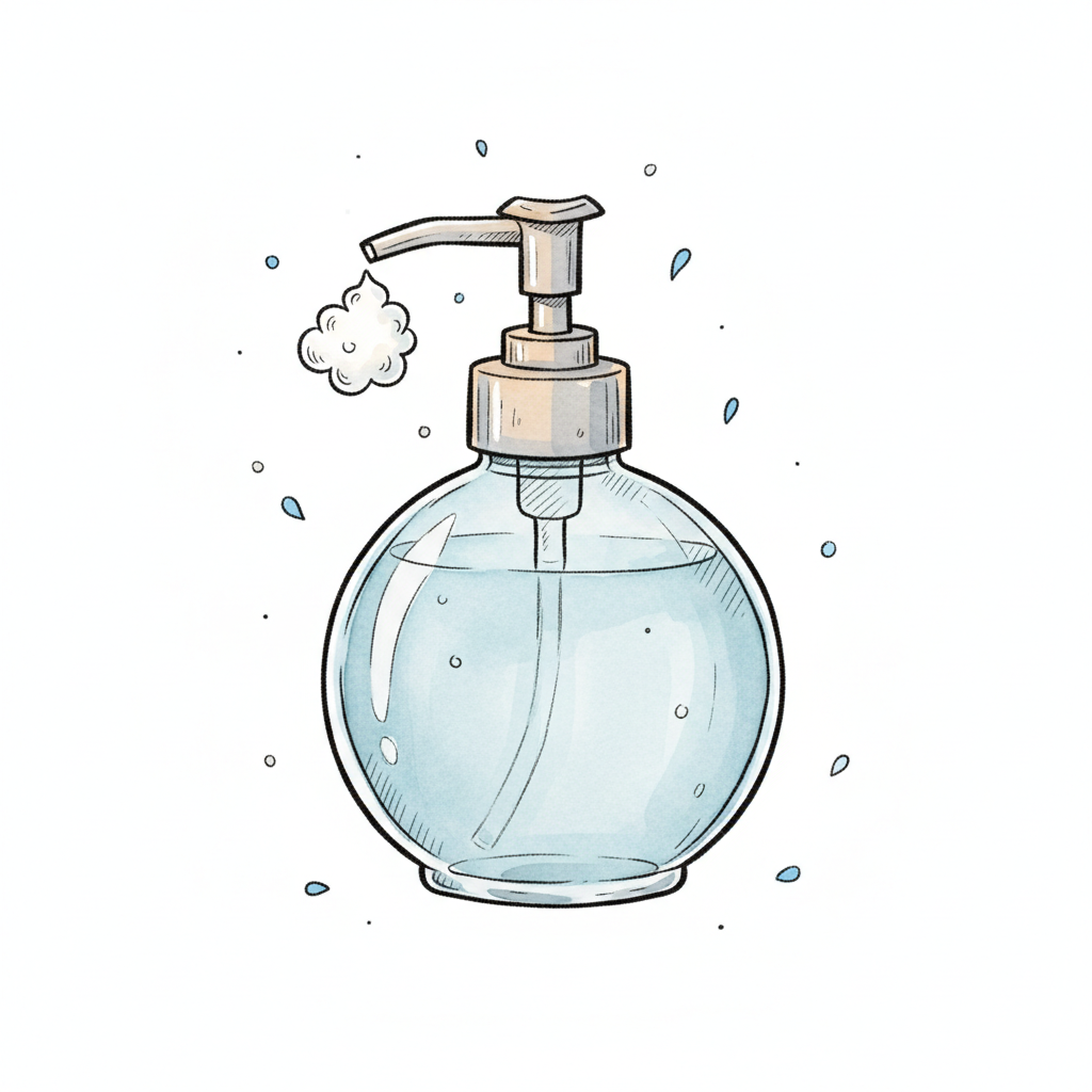 aquarell doodle-stil seifenspender sprühflasche illustration wasser