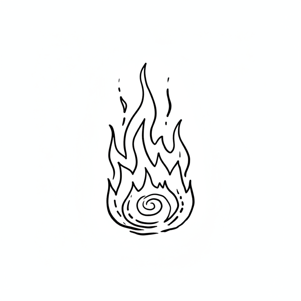 Ein stilisierter Flammenwurf mit geschwungenen Linien.