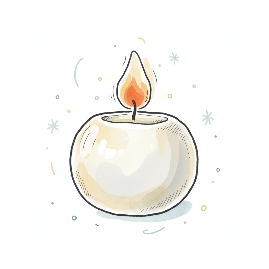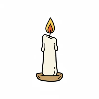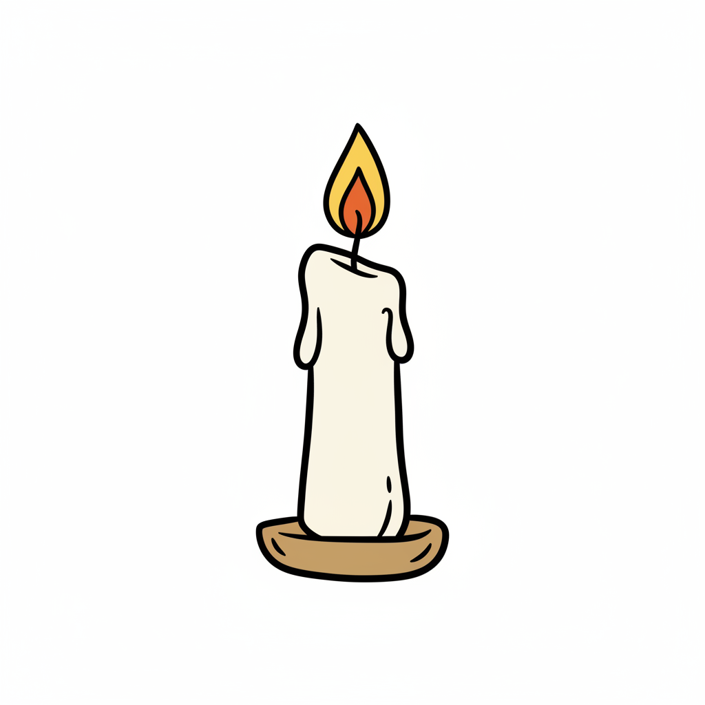 Eine illustrierte Kerze mit flammendem Docht auf einem kleinen Teller.
