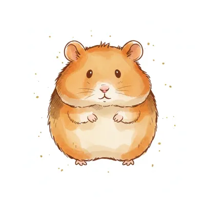 Niedlicher, flauschiger Hamster im Aquarell-Cartoon-Stil auf weißem Hintergrund.