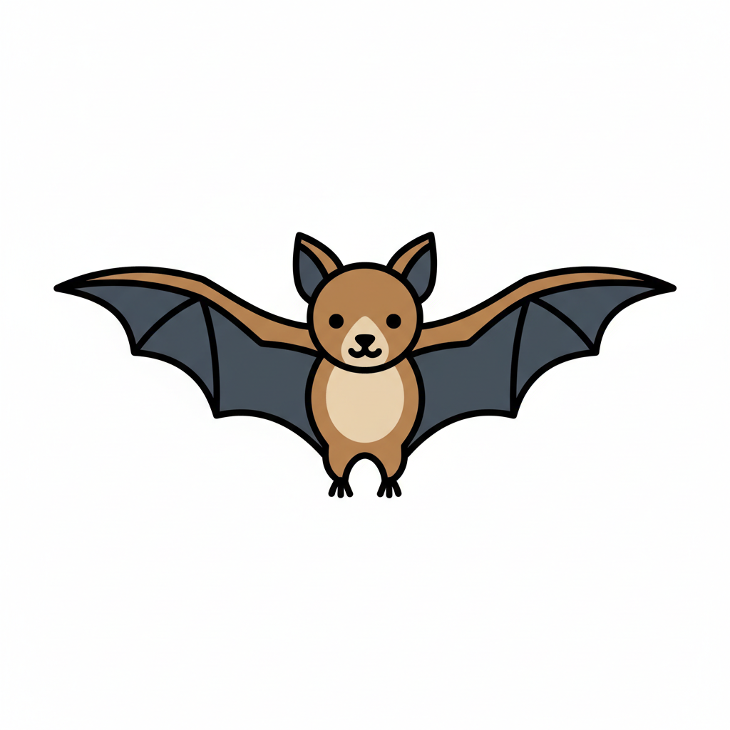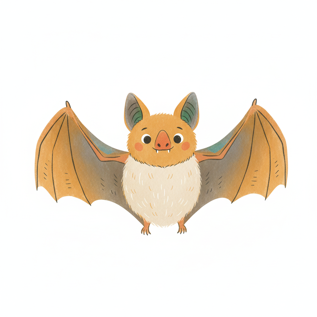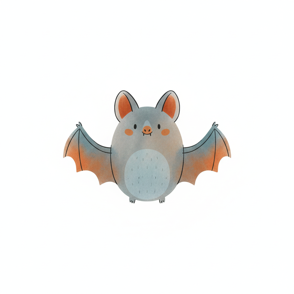 Eine niedliche, cartoonhafte Fledermaus mit großen Ohren und breiten Flügeln.