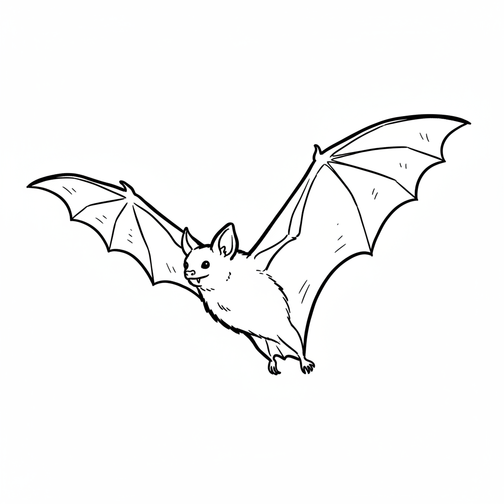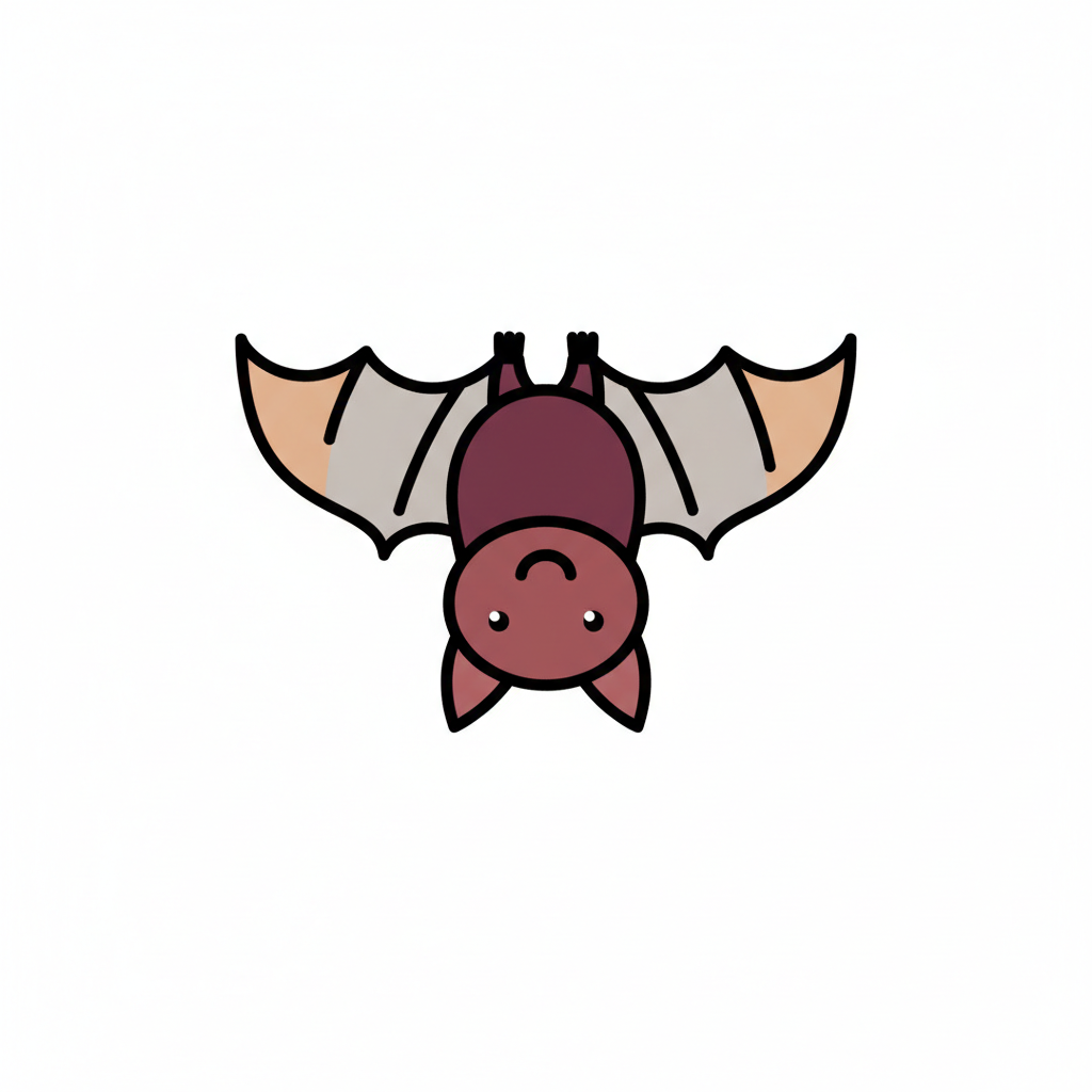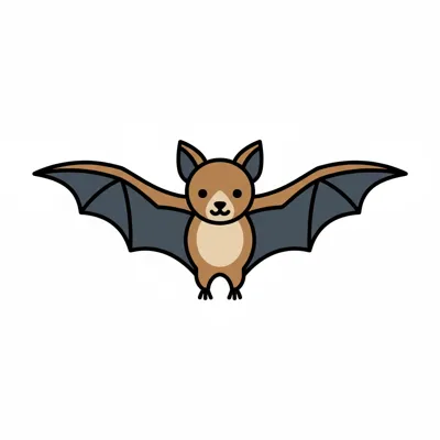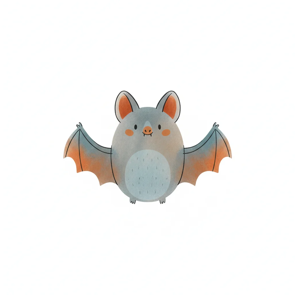 Eine niedliche, cartoonhafte Fledermaus mit großen Ohren und breiten Flügeln.
