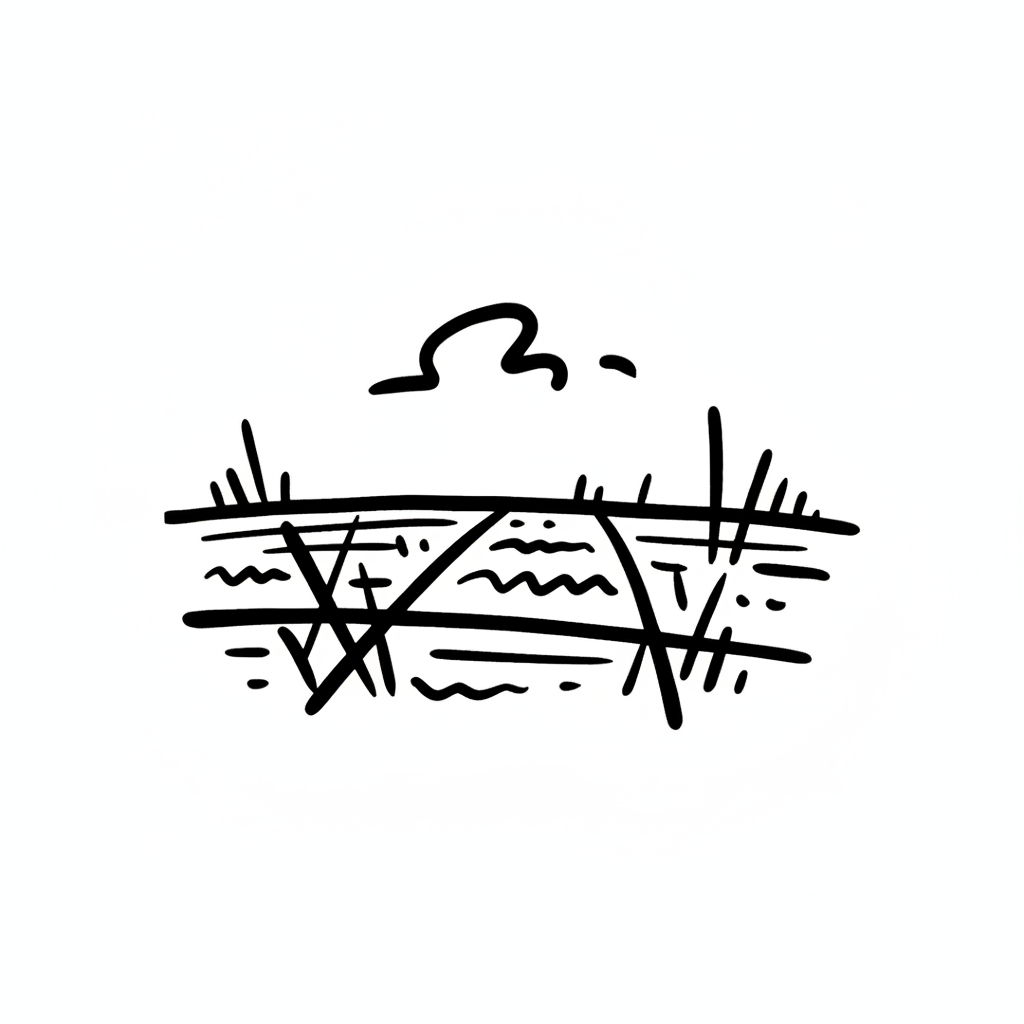 Eine minimalistische Schwarz-Weiß-Skizze. Handgezeichnet, mit Tintenmarker, dicken Konturen. Minimalistische Strichzeichnung, isoliert auf weißem Hintergrund. Keine Schattierungen, kein Grau, hoher Kontrast. Skizzenhafte Ästhetik, verspielt und grob. Hoher Kontrast, isoliert auf weißem Hintergrund. WICHTIG: KEIN TEXT im Bild. Hintergrund: Rein weiß.