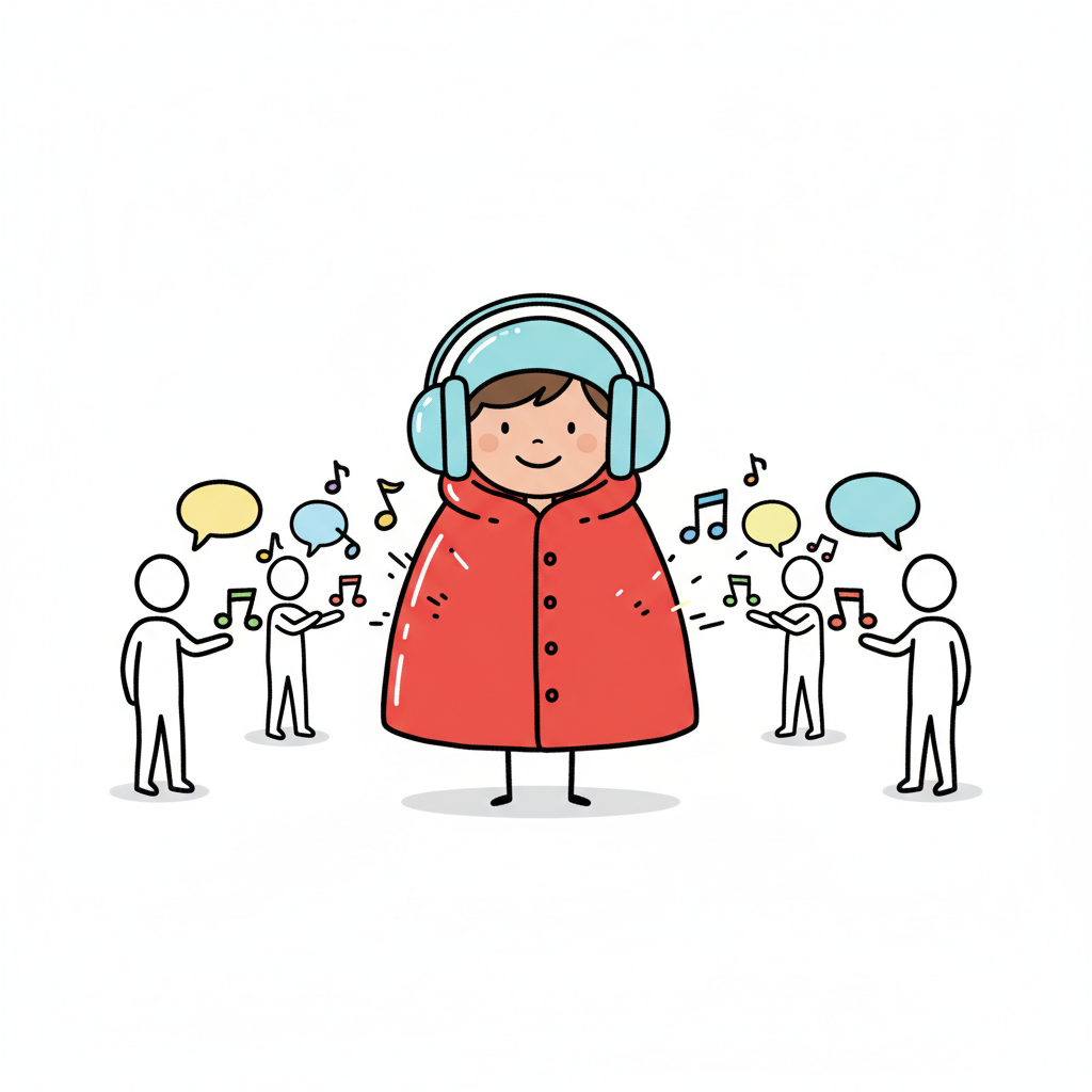 Eine Person mit Kopfhörern blendet die Geräusche und Gespräche ihrer Umgebung aus.