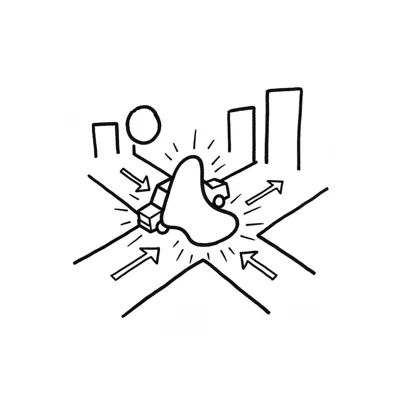 Eine minimalistische Schwarz-Weiß-Skizze. Handgezeichnet, mit Tintenmarker, dicken Konturen. Minimalistische Strichzeichnung, isoliert auf weißem Hintergrund. Keine Schattierungen, kein Grau, hoher Kontrast. Skizzenhafte Ästhetik, verspielt und grob. Hoher Kontrast, isoliert auf weißem Hintergrund. WICHTIG: KEIN TEXT im Bild. Hintergrund: Rein weiß.