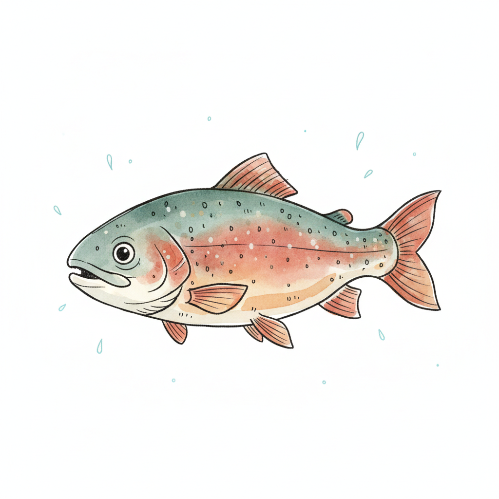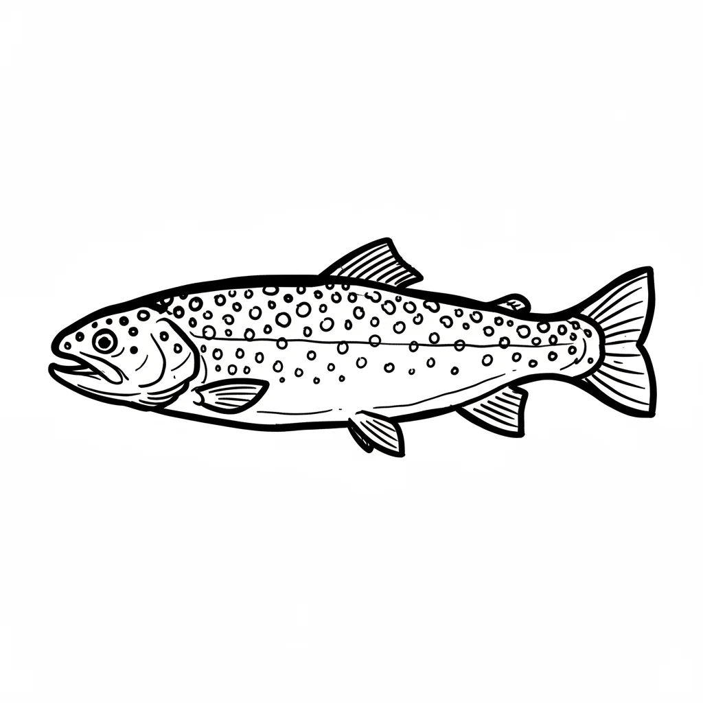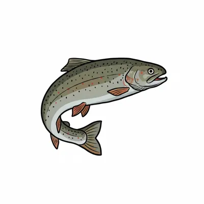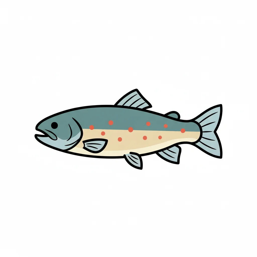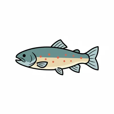 Bunte, cartoonartige Forelle mit orangefarbenen Flecken.