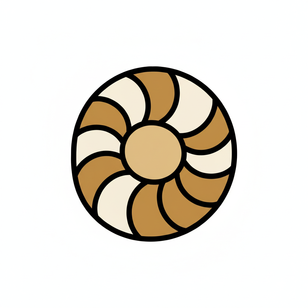 Rundes, stilisiertes Gebäck oder Süßigkeit mit braunen und beigen Spiralmustern.