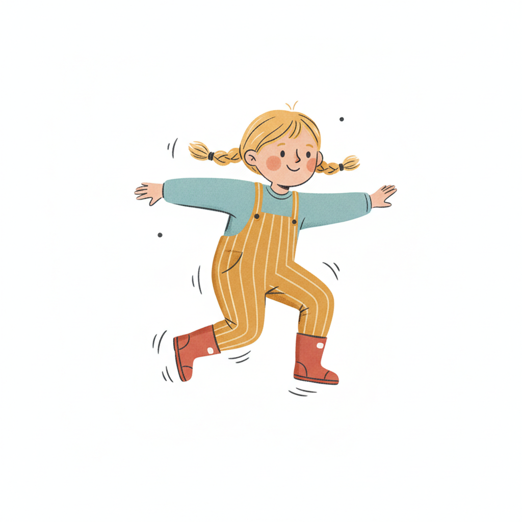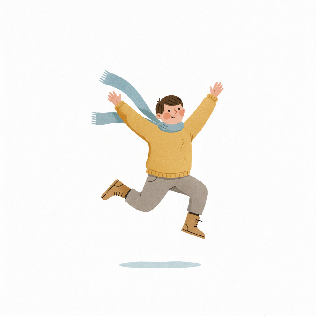 kind bewegung freude nordic-bilderbuch-stil hüpfen