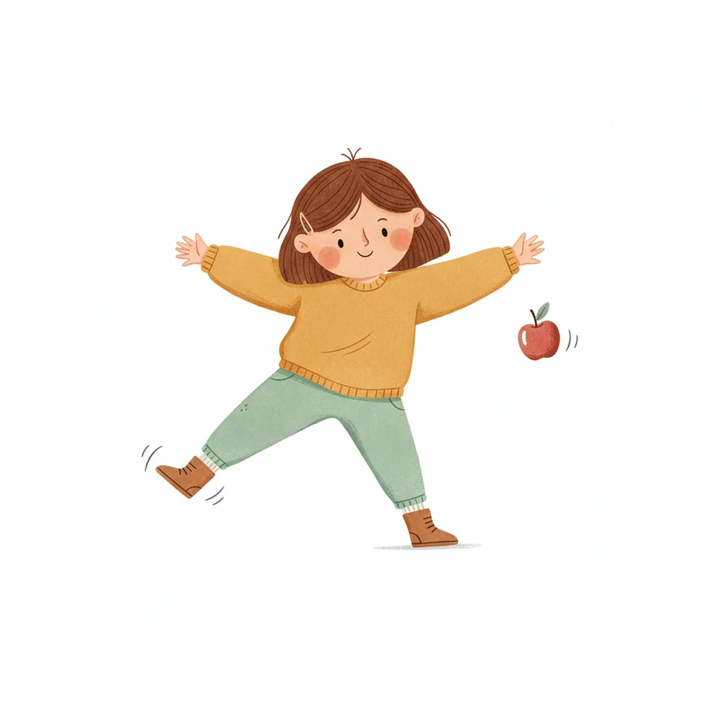 stolpern kind freude apfel nordic-bilderbuch-stil