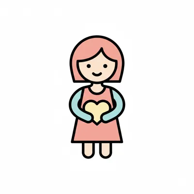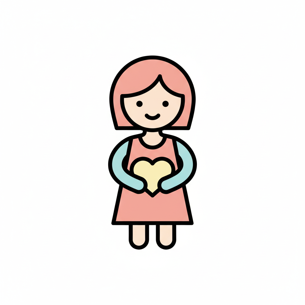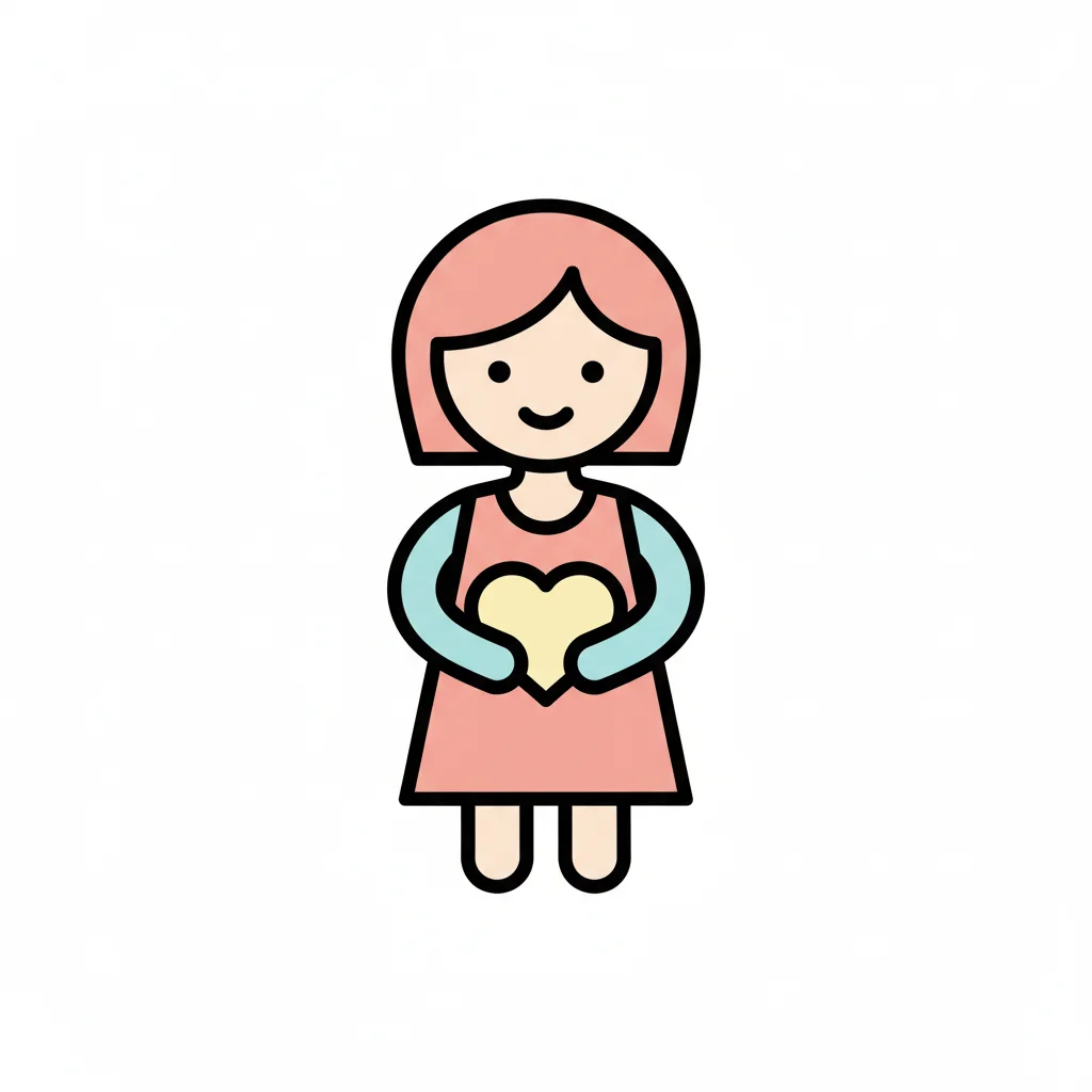 Ein Mädchen mit Herz in den Händen, lächelnd und freundlich.