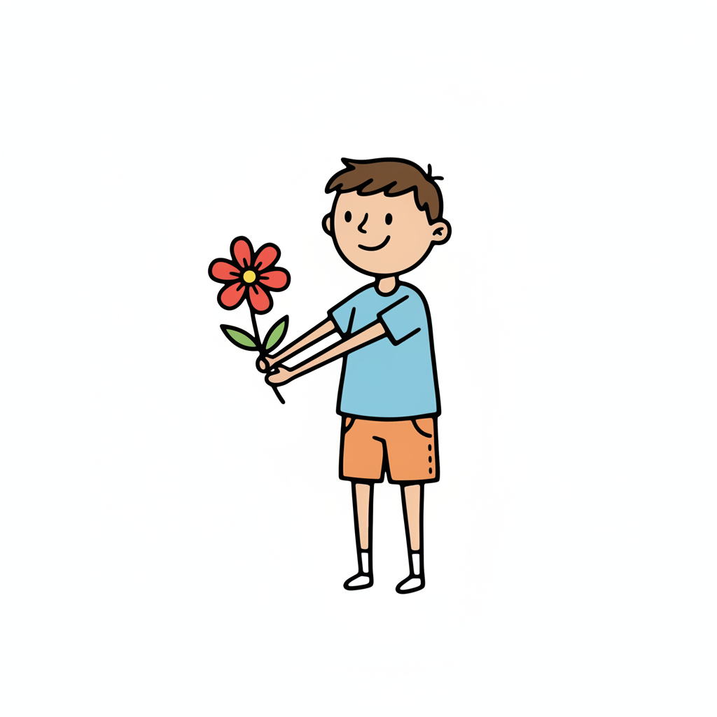 Minimalistische, handgzeichnete Illustration mit deutlich handgezeichneter Wirkung. Handgezeichnete Schwarze Konturen ungleichmäßig und unregelmäßig von Hand gezeichnet. Figuren werden mit stark vereinfachten Körperformen dargestellt. Arme und Beine sind nur als einfache Linien oder Strichformen angedeutet. Flächige Farben ohne Verläufe oder Texturen, ruhige harmonische Farbpalette und reduzierte Details sorgen für eine klare, kindgerechte Darstellung. Saubere, übersichtliche Komposition mit rein weißem Hintergrund.
