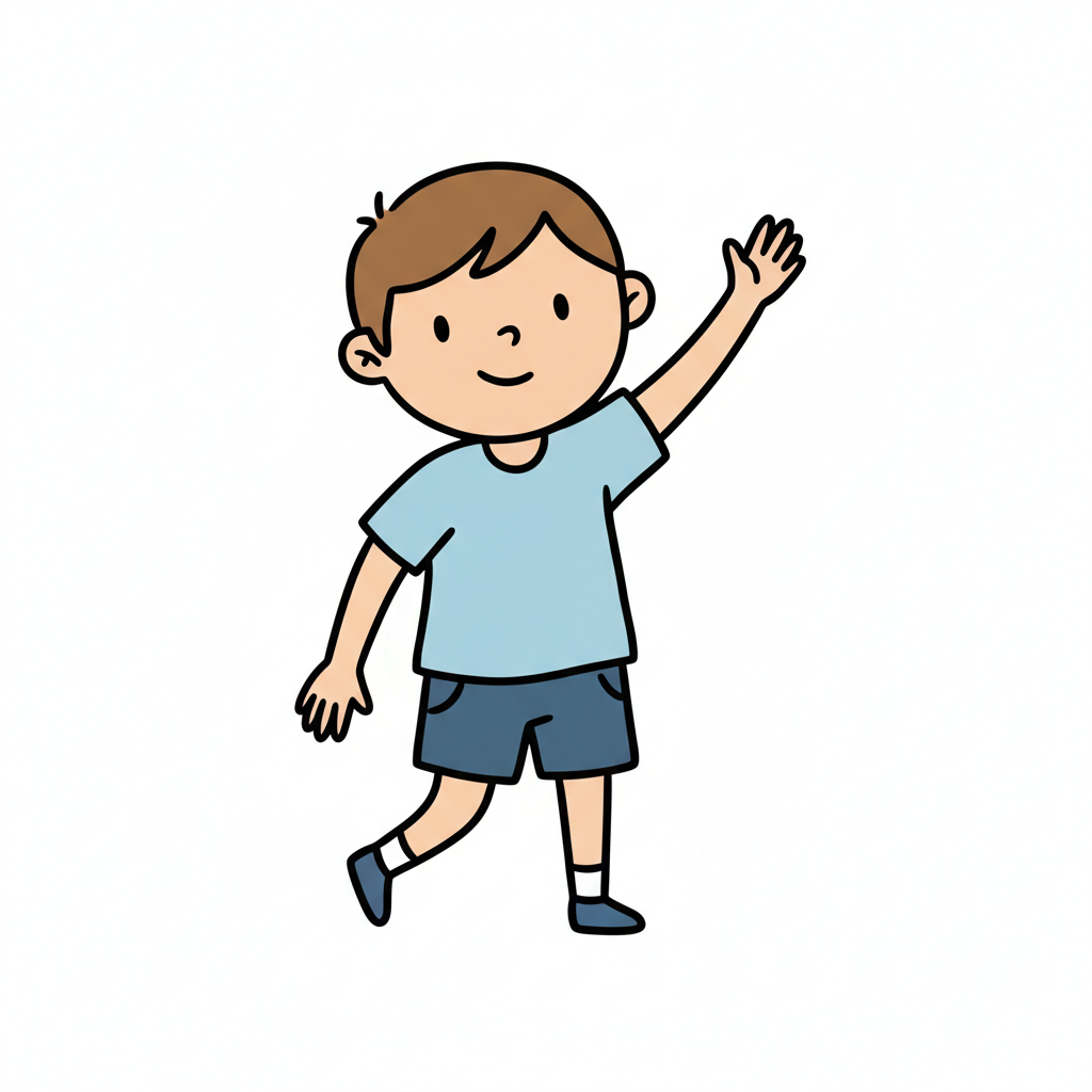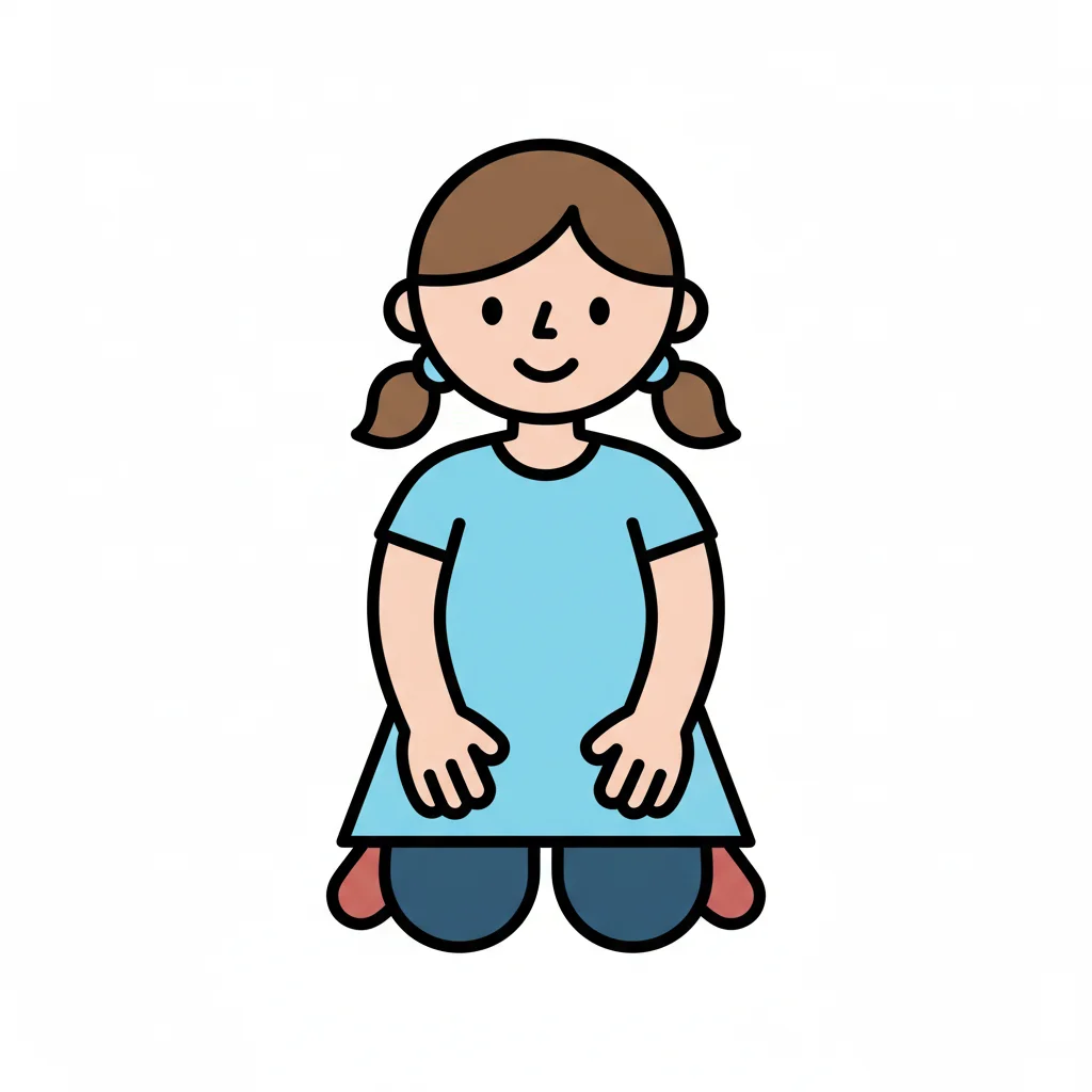 Minimalistische Vektorillustration im flächigen Icon-Stil. Sehr einfache, reduzierte Formen mit klaren, dicken Konturen und wenigen Details. Flächige Farben ohne Verläufe oder Texturen, ruhige Farbpalette, klare Silhouette und gut lesbare, freundliche Figur. Moderne, kindgerechte Lernillustration im Stil einfacher Piktogramme, sauberer Hintergrund und übersichtliche Komposition. Hoher Kontrast, isoliert auf weißem Hintergrund. WICHTIG: KEIN TEXT im Bild. Hintergrund: Rein weiß.