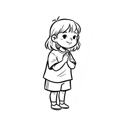 Ein Kind steht mit gefalteten Händen und lächelt.