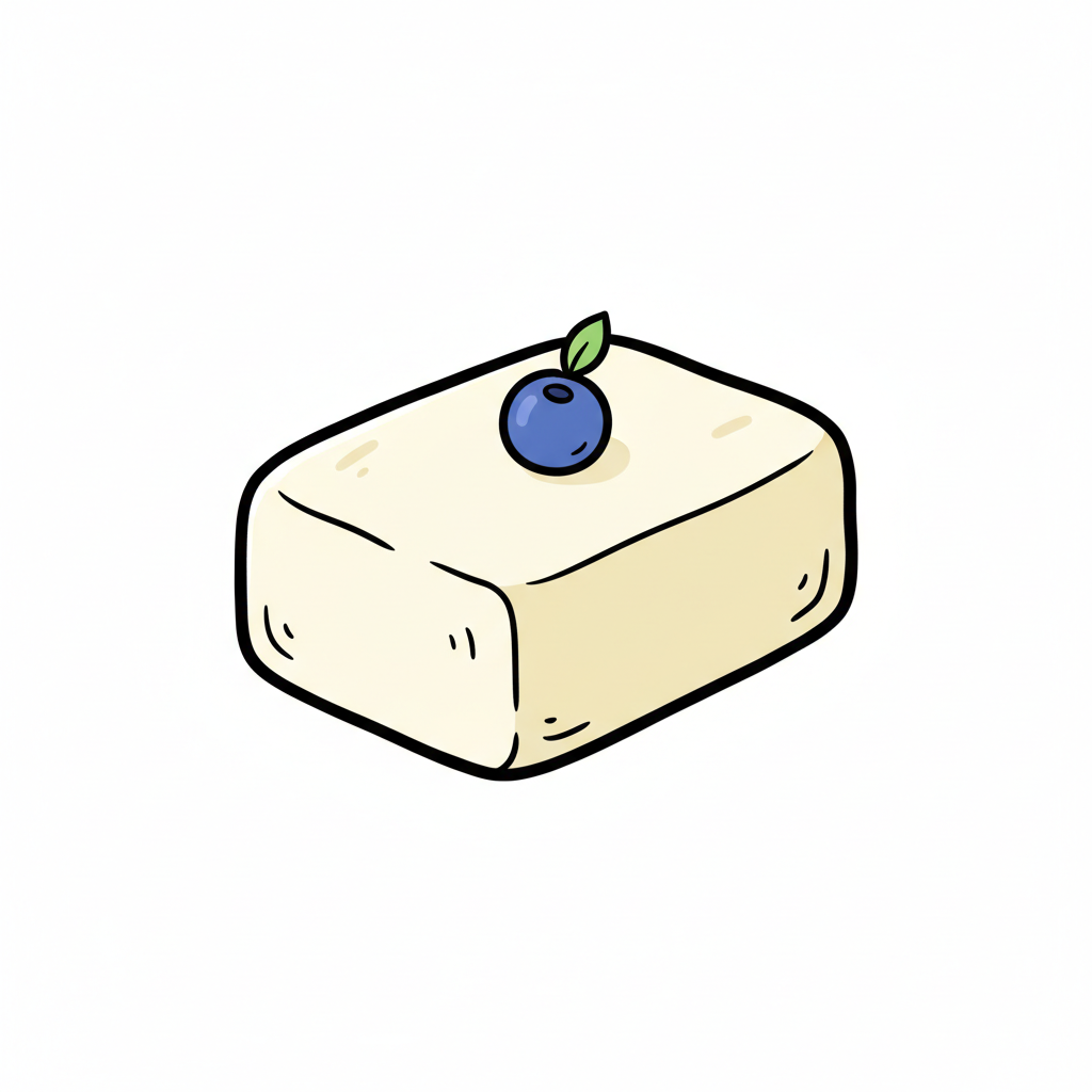 Grafik eines lächelnden, niedlichen Tofublocks mit einem Blatt.