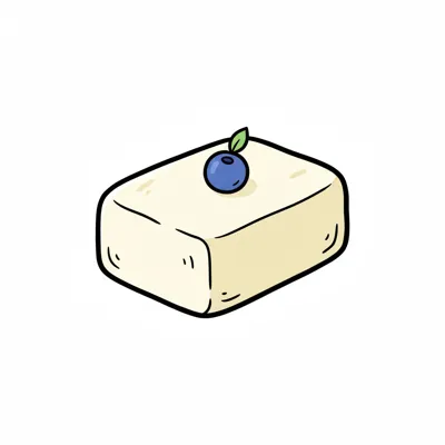 Ein Stück Käse mit einer blauen Beere oben drauf.