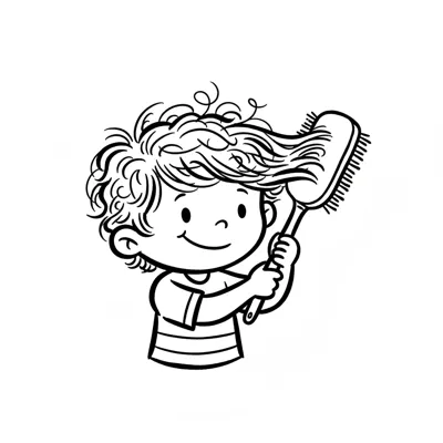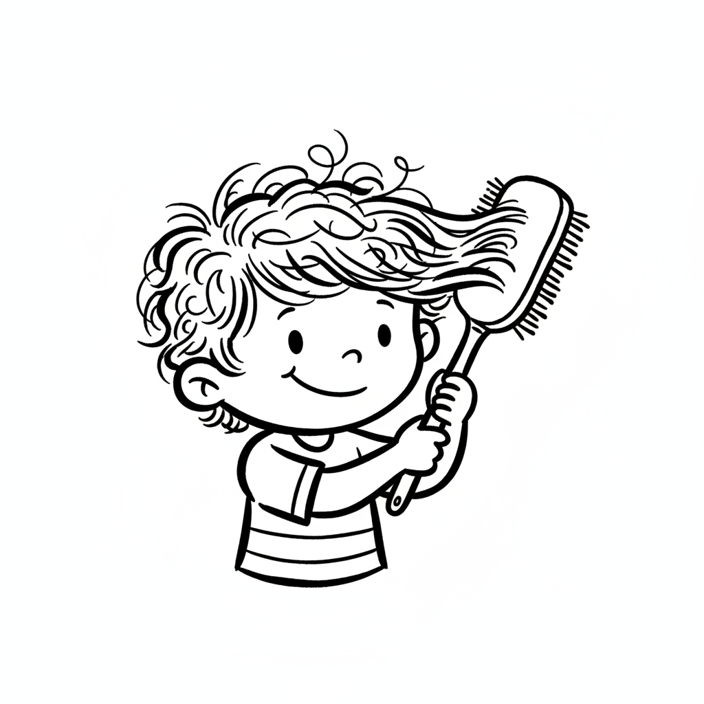 Junge mit lockigem Haar, der einen Kamm benutzt und lächelt.