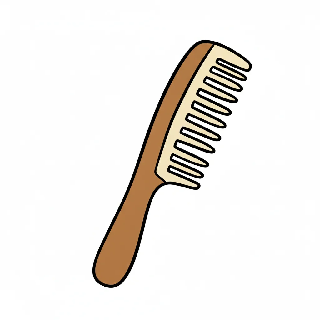 Ein einfacher Kamm mit einem Holzgriff und feinen Zähnen.