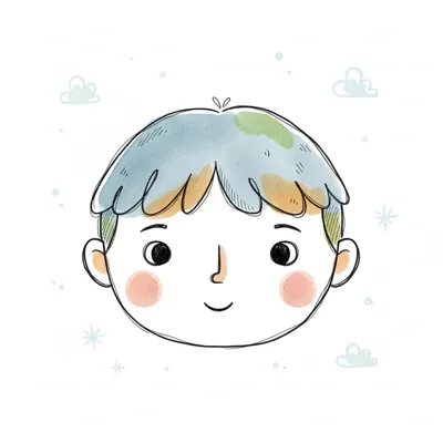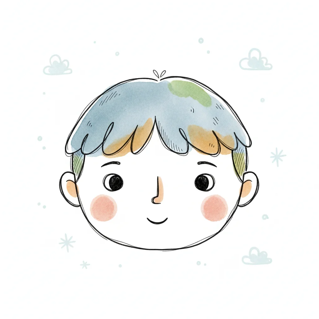 Niedliche, kindgerecht illustrierte Szene mit einem Kind oder einer Person als Hauptfigur, vor rein weißem Hintergrund, im frech-nordischen Aquarell-Skizzenstil. Klare, leicht wackelige Tuschekonturen, sichtbare Pinsel- und Strichtextur, dezente Schraffuren, weiche handgemalte Farbflächen in gedeckten Farben. Einfache, runde Formen. Keine harten Schatten, sondern sanfte, transparente Aquarellschichten. Leicht raue, handgezeichnete Linien statt glatter Vektorkanten. Subtile, vereinzelte Kritzelpunkte oder kleine Details im Hintergrund (wie Pünktchen oder feine Striche), aber keine echte Umgebung oder Landschaft. Die Figur ist mittig zentriert. Insgesamt charmant, humorvoll, warm und handgemacht wirkend. WICHTIG: Das Bild darf ABSOLUT KEINEN TEXT, KEINE BUCHSTABEN und KEINE ZAHLEN enthalten.