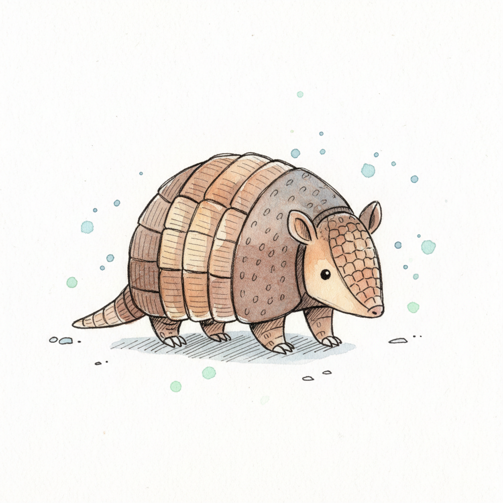 Eine zeichnerische Darstellung eines Gürteltiers.