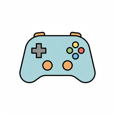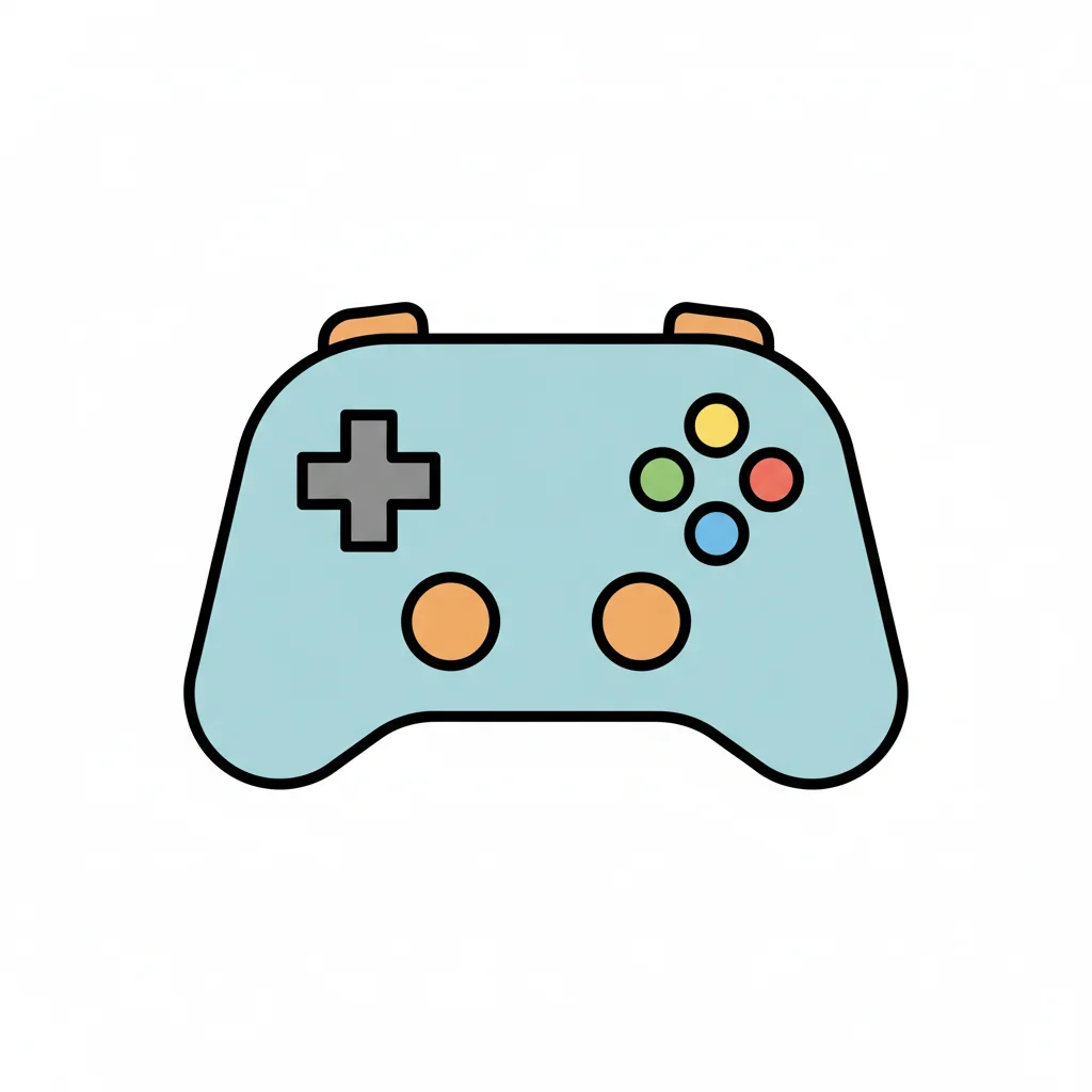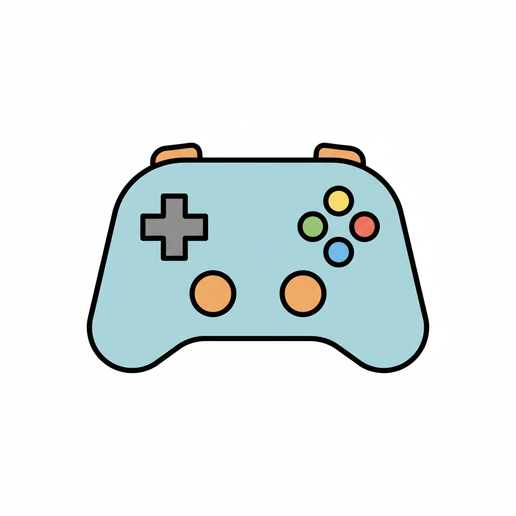 Eine einfache Illustration eines hellblauen Gamecontrollers mit bunten Knöpfen auf weißem Hintergrund.